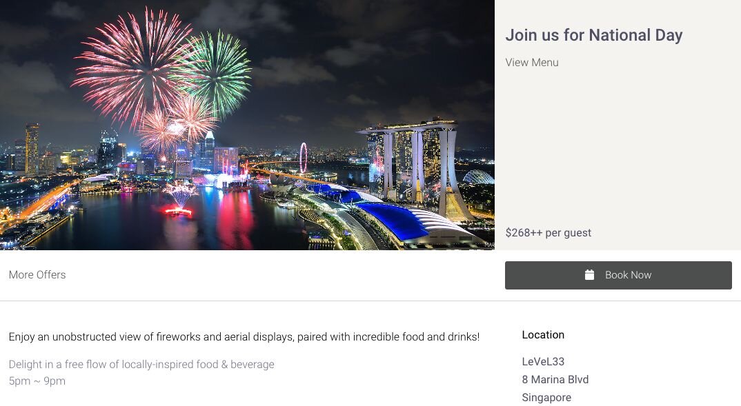 Level 33 used the SevenRooms online booking widget to take reservations for its National Day cocktail event.